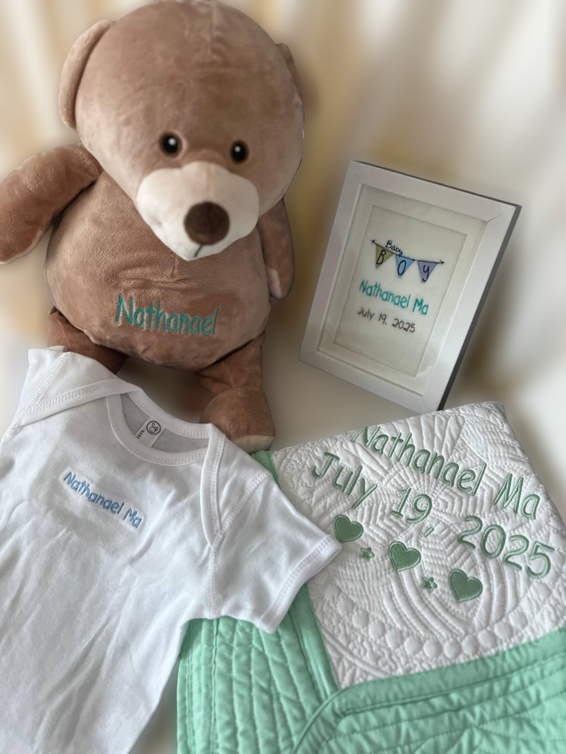 Custom embroidery with baby’s name and date